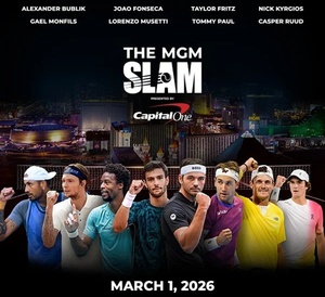 First-Round Matchups Set For The MGM Slam Presented by Capital One March 1 at T-Mobile Arena in Las VegasFriday, January 30, 2026American Taylor Fritz Takes on Countryman Tommy Paul; Lorenzo Musetti Battles Two-Time Slam Finalist Casper Ruud; Teenager Joao Fonseca Faces Veteran Gael Monfils; Firey Australian Nick Kyrgios Faces Streaking Alexander Bublik |