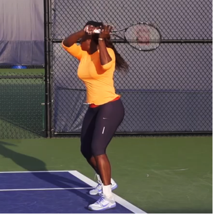 Take a look at the above pictures. This is the fourth picture in the sequence, and it is not until this point that the racket turns. Notice the ball is no longer in the frame when the “coming over” takes place. The ball is long gone. The only thing they are coming over is air. I would still not recommend letting the forearm turn as Federer and Nadal do above. Leave this to the pros. The timing it takes to let the racket turn this close to the contact point without it affecting the ball is very difficult, and it adds no value to the swing. When it’s time to release the elbow in the swing, just finish on edge over your shoulder like Serena. Granted, she does not finish like this all the time, but what happens after the ball is hit (follow through) is much less important to the ball than what happens before (backswing) and during the hit.